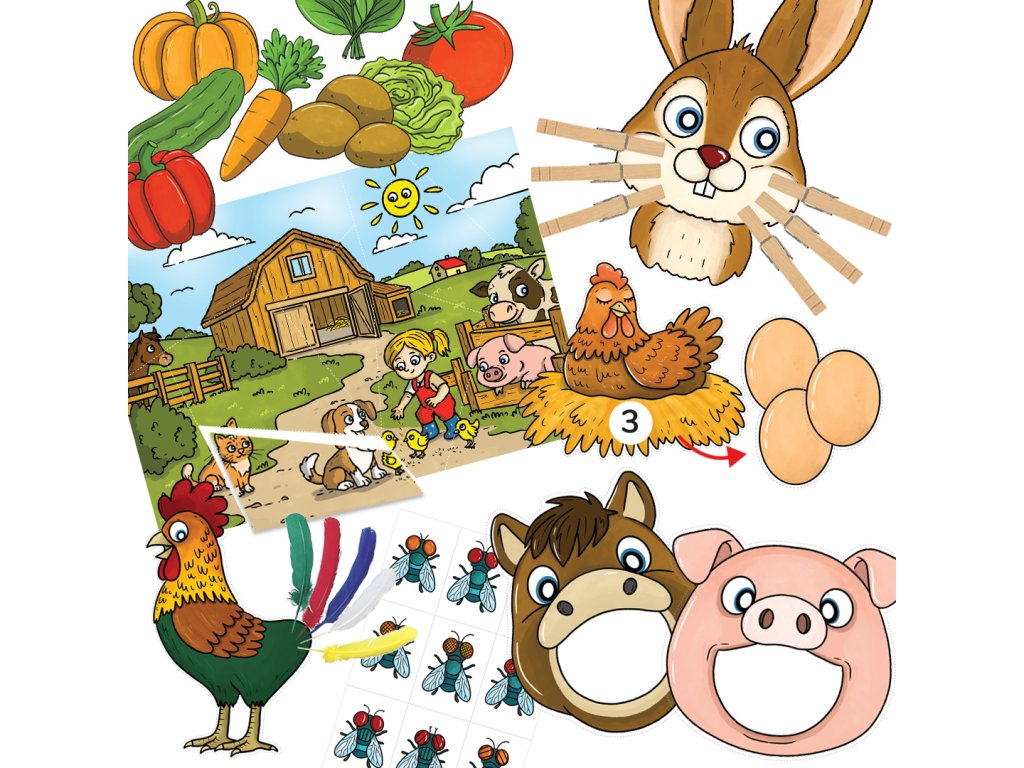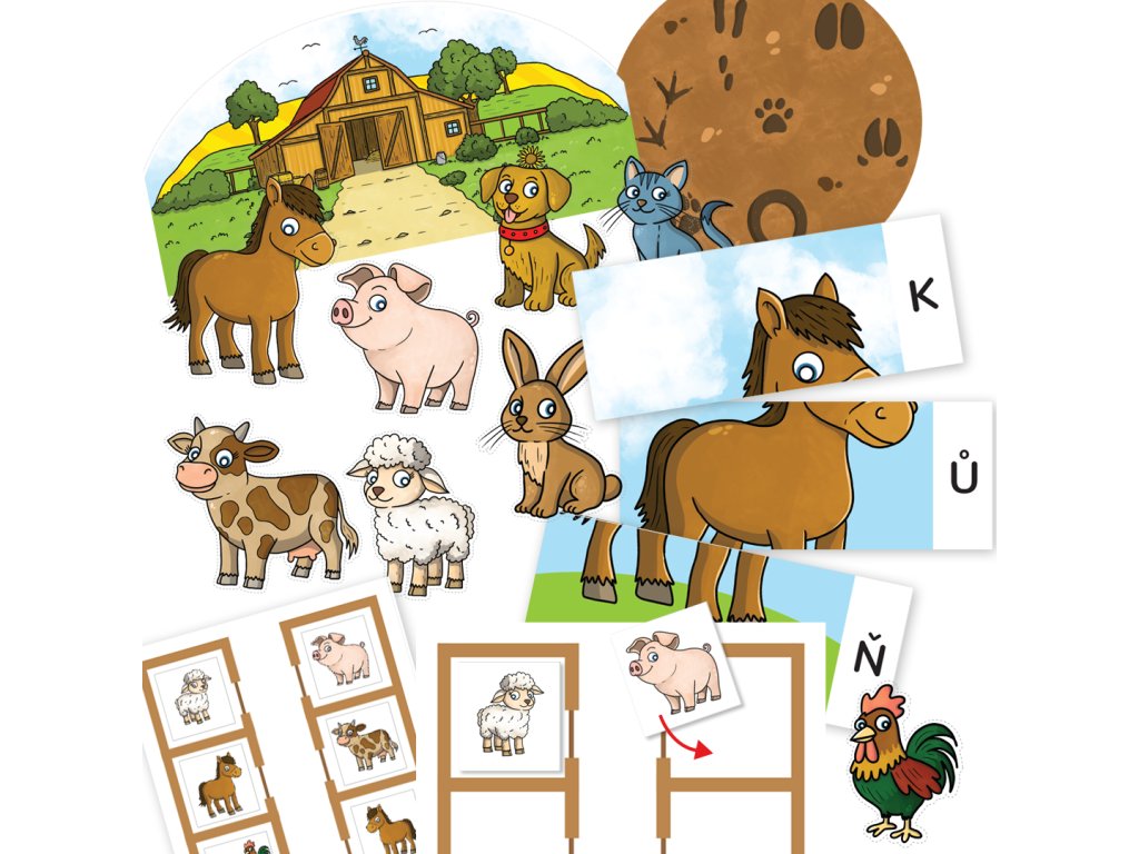 Děti se při aktivitách setkávají se zvířaty nebo zeleninou i činnostmi na farmě. Materiál lze využít ve smyslových boxech, na tácech, při řízených aktivitách i při volné hře. Díky různým úrovním obtížnosti je vhodný pro mladší i starší děti.